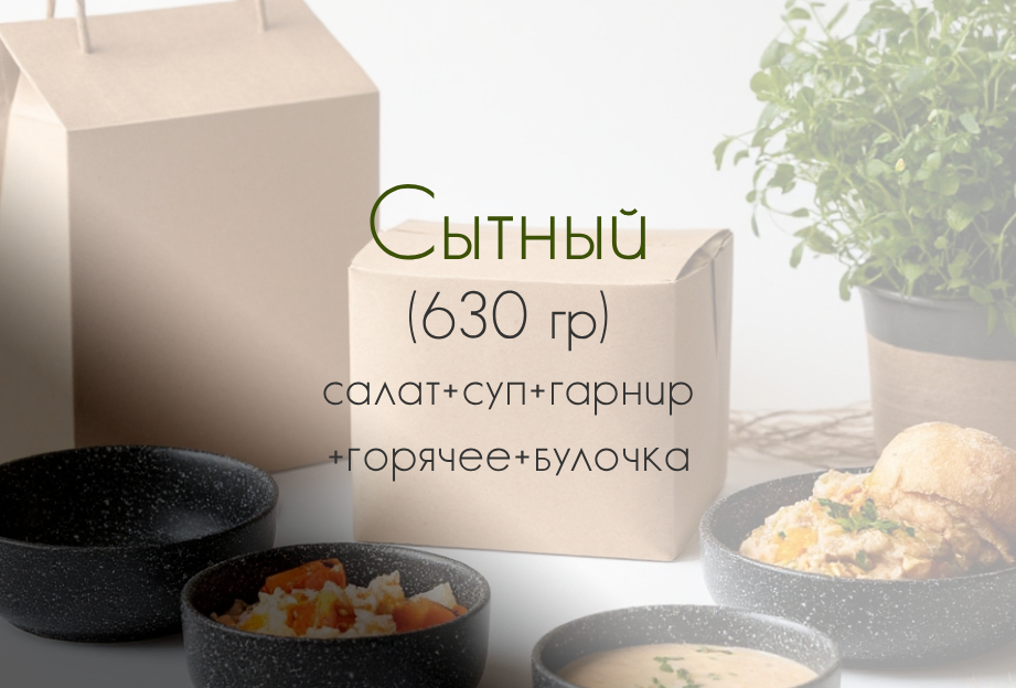 1. Салат из фунчозы с овощами 100 гр (фунчоза, огурец, морковь, перец болгарский, соевая заправка, кунжут, специи) 2. Суп с фрикадельками 250 гр (фрикадельки мясные, картофель, лук, морковь, горошек зеленый) 3. Булочка